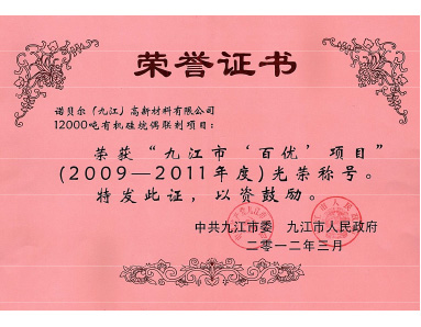 中共九江市委、九江市人民政府聯(lián)合授予“2009-2011年度九江市百優(yōu)項目”榮譽(yù)