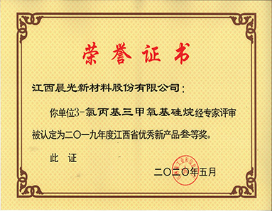 3-氯丙基三甲氧基硅烷產(chǎn)品被江西省工業(yè)信息化廳授予“江西省2019年新產(chǎn)品三等獎”榮譽(yù)